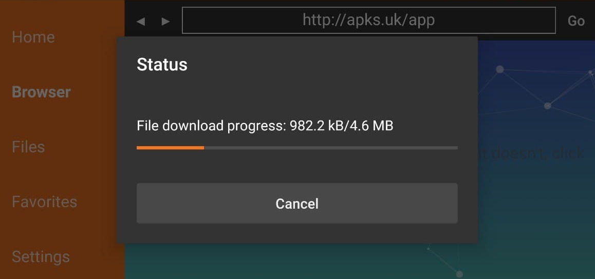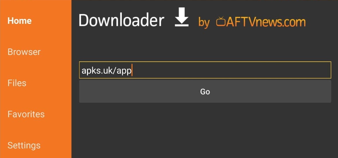 7. Within the search box on the Home screen, enter the following URL – apks.uk/app and click Go.