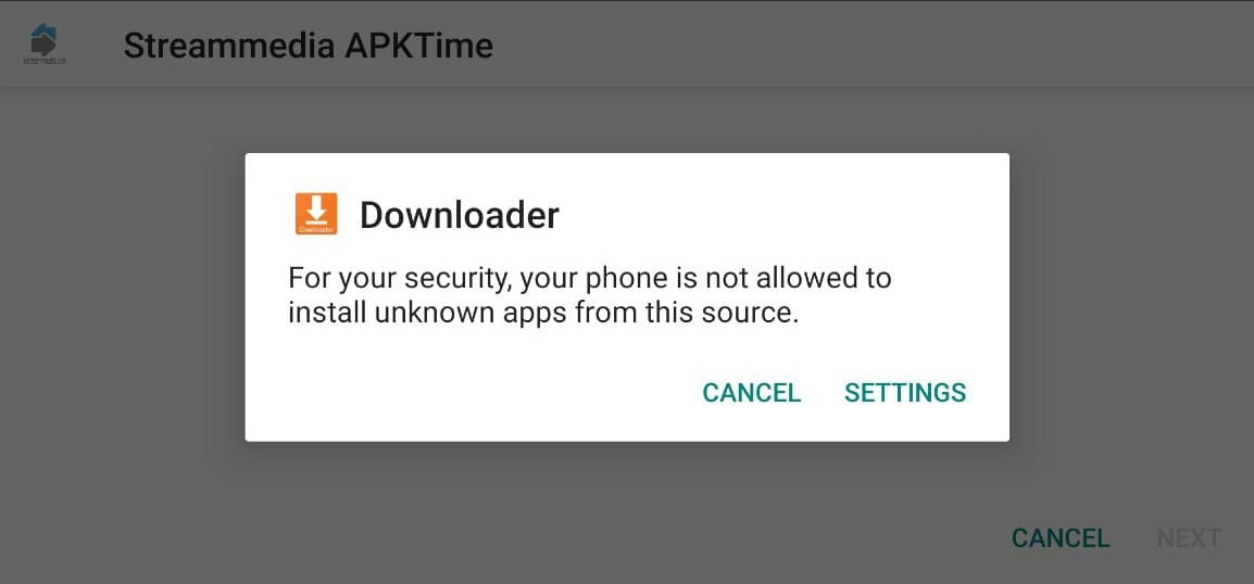 Important: If you try to sideload applications using Downloader for the first time on any Android device you will likely encounter the following screen.